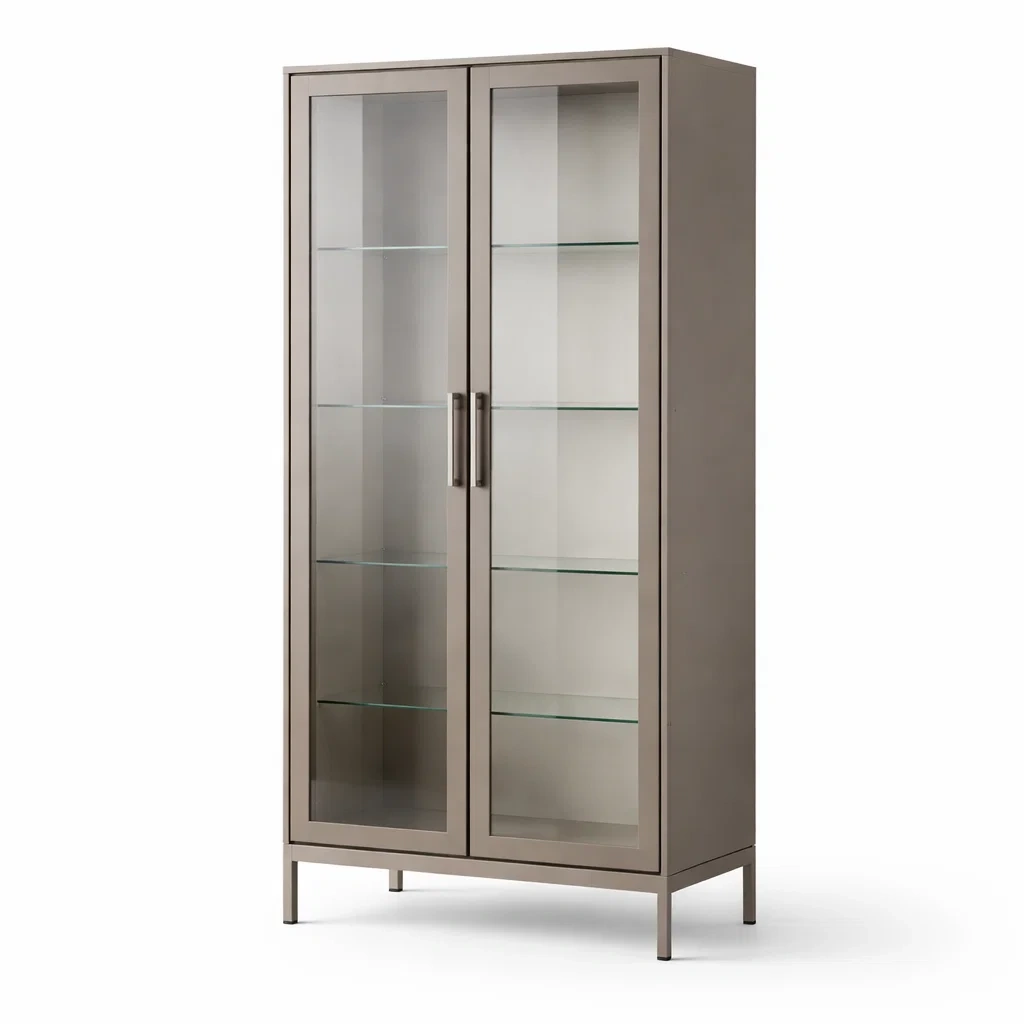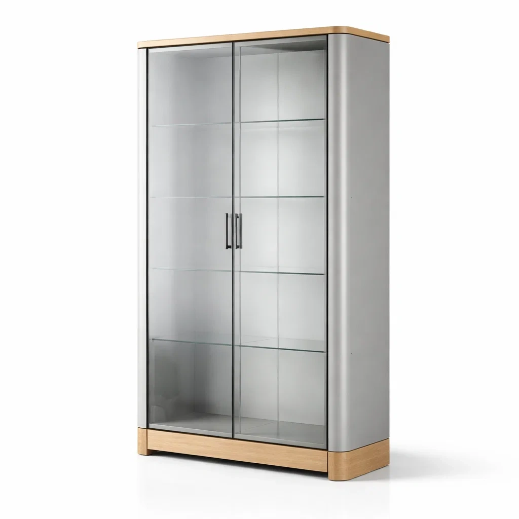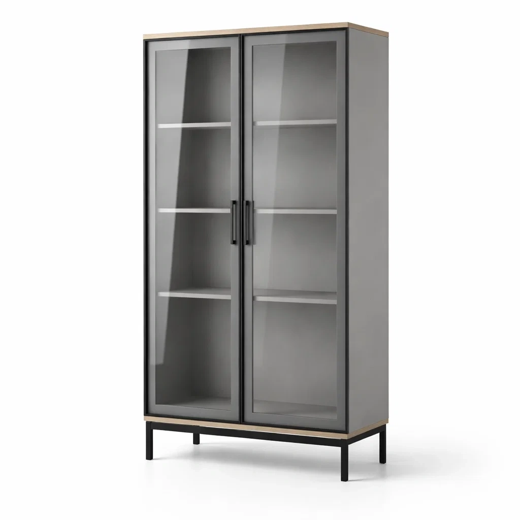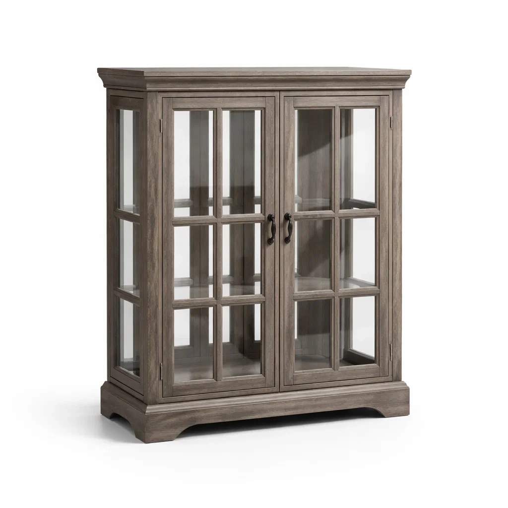 Vitrine en Bois avec Verre Trempé et Portes Battantes